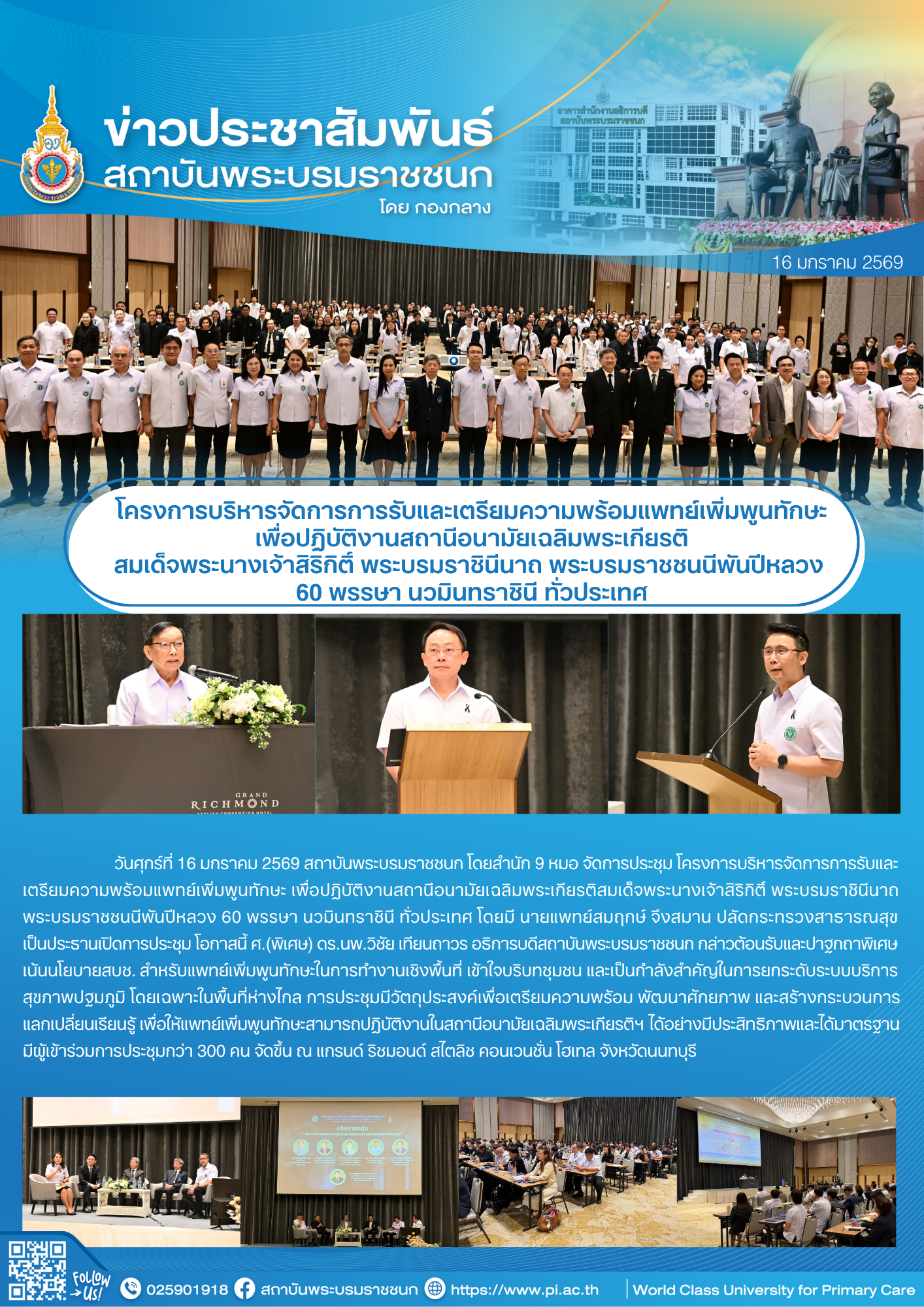 โครงการบริหารจัดการการรับและเตรียมความพร้อมแพทย์เพิ่มพูนทักษะ เพื่อปฏิบัติงานสถานีอนามัยเฉลิมพระเกียรติ สมเด็จพระนางเจ้าสิริกิติ์ พระบรมราชินีนาถ พระบรมราชชนนีพันปีหลวง 60 พรรษา นวมินทราชินี ทั่วประเทศ