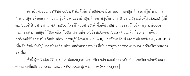 คลิ๊กที่นี่ <<< เพื่ออ่านแผนการดำเนินการจัดอบรมหลักสูตรฝึกอบรมผู้บริหารการสาธารณสุขระดับต้น (ผ.บ.ต.) รุ่นที่ ๓๕ ประจำปีงบประมาณ พ.ศ. ๒๕๖๙