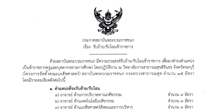 ประกาศสถาบันพระบรมราชชนก เรื่อง รับย้าย/รับโอน ข้าราชการ