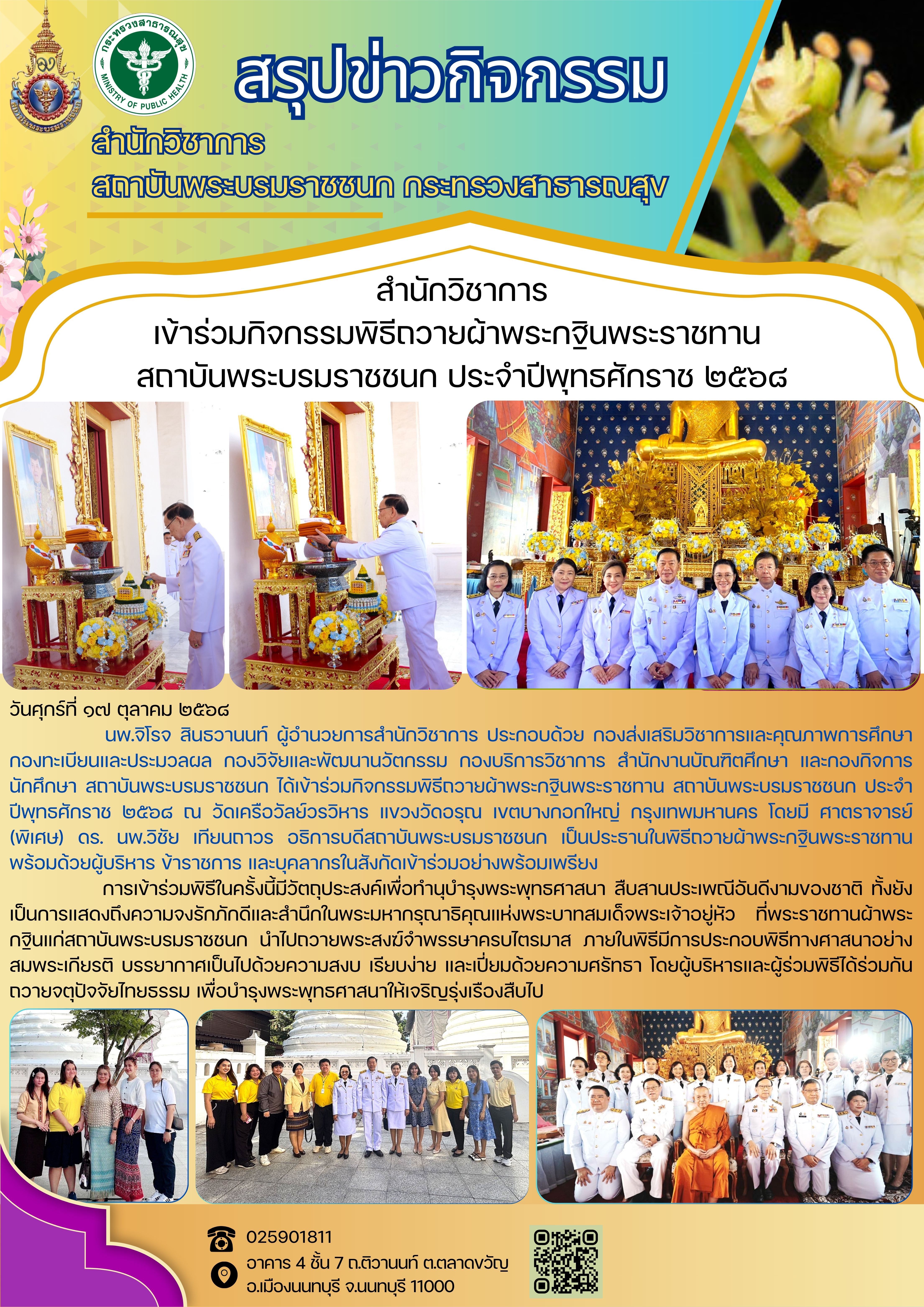 สำนักวิชาการ เข้าร่วมกิจกรรมพิธีถวายผ้าพระกฐินพระราชทานสถาบันพระบรมราชชนก ประจำปีพุทธศักราช ๒๕๖๘