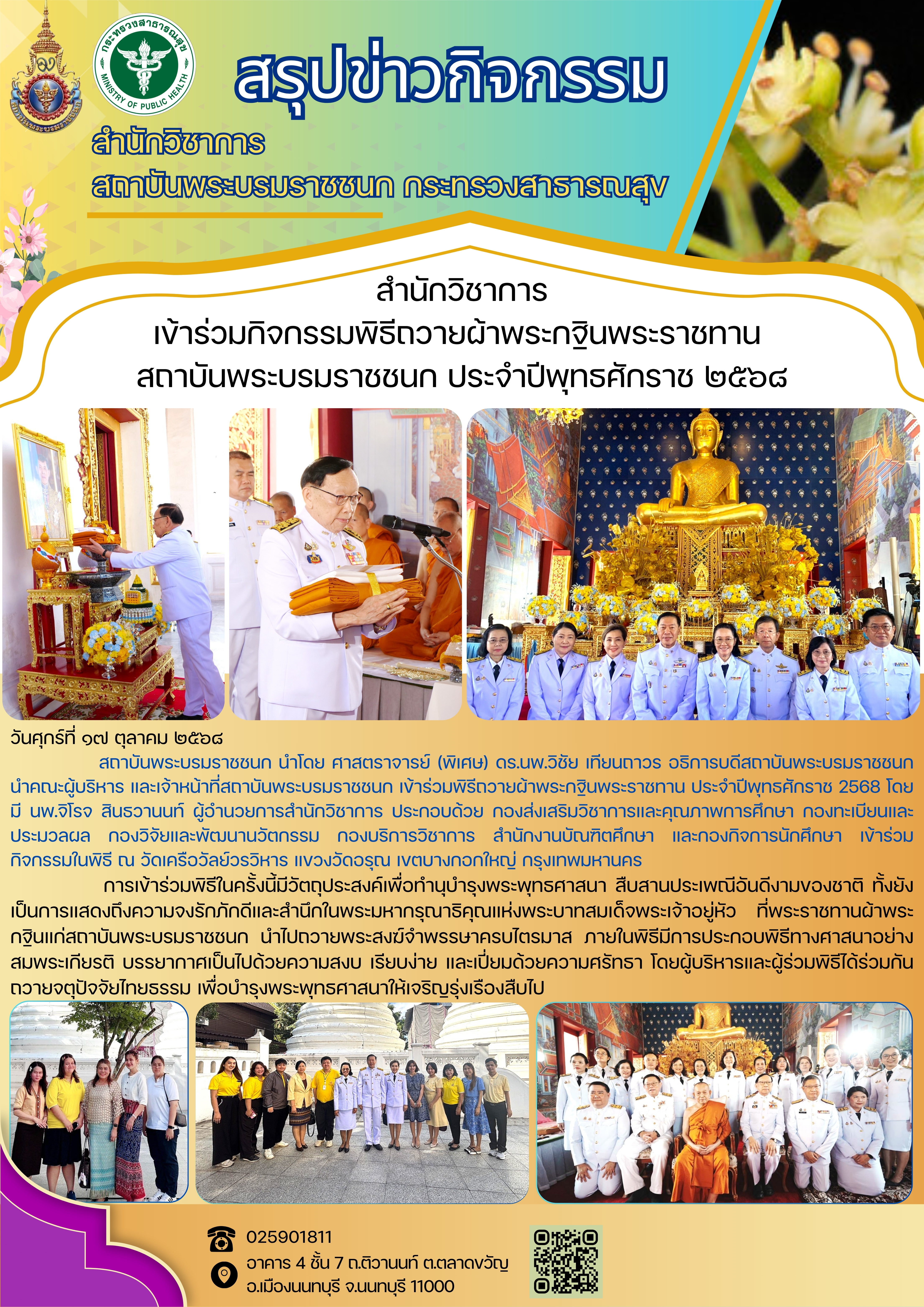 สำนักวิชาการ เข้าร่วมกิจกรรมพิธีถวายผ้าพระกฐินพระราชทานสถาบันพระบรมราชชนก ประจำปีพุทธศักราช ๒๕๖๘