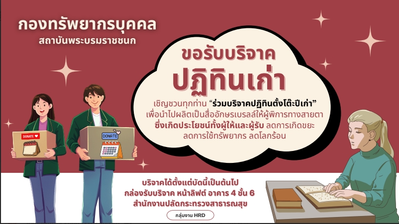 ขอรับบริจาคปฏิทินเก่า เพื่อใช้ผลิตสื่ออักษรเบรลล์และส่งเสริมการเรียนรู้สำหรับผู้พิการทางสายตา