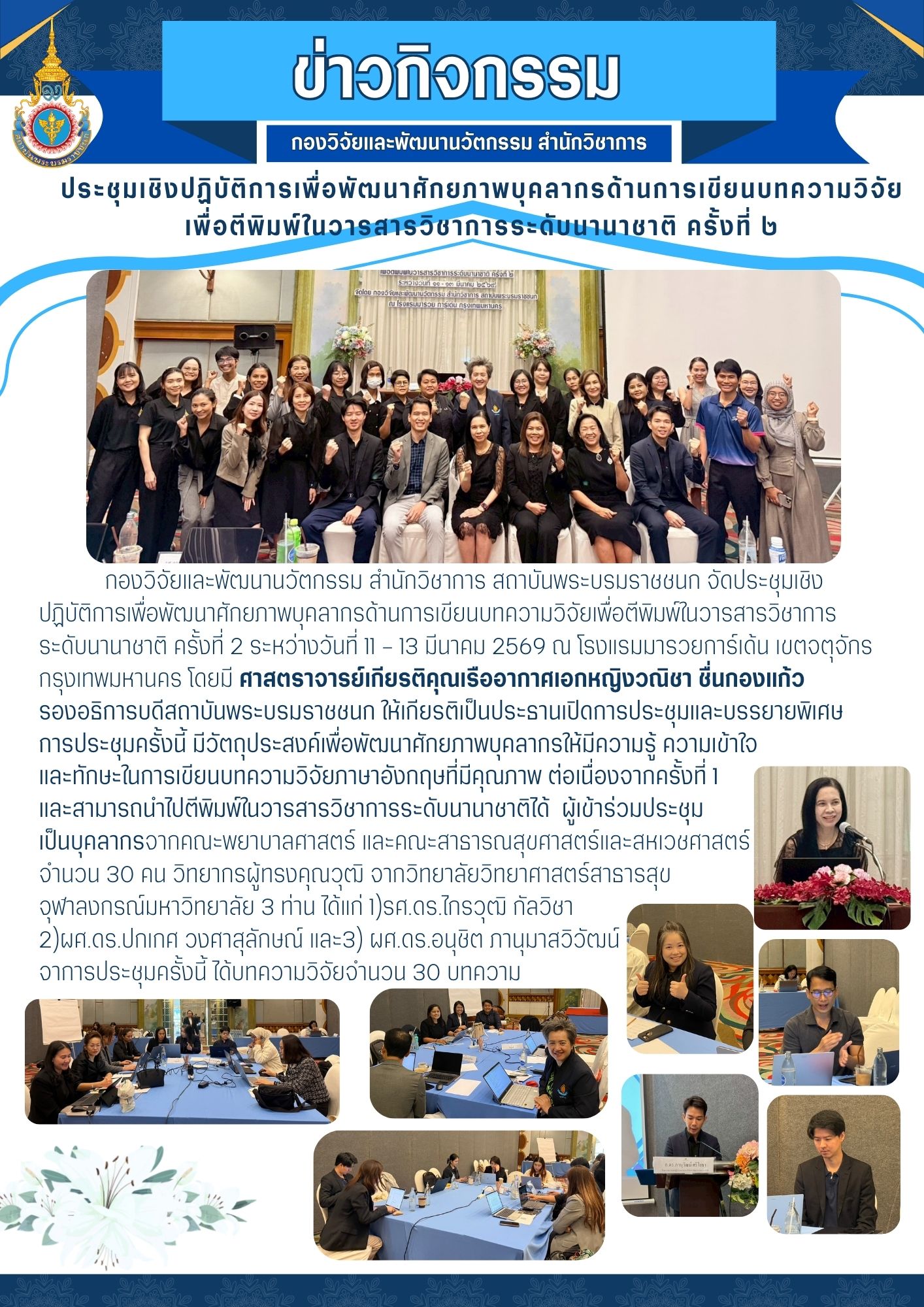 ประชุมเชิงปฏิบัติการเพื่อพัฒนาศักยภาพบุคลากรด้านการเขียนบทความวิจัยเพื่อตีพิมพ์ในวารสารวิชาการระดับนานาชาติ ครั้งที่ 2